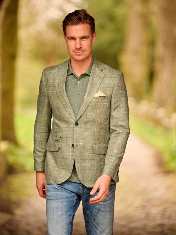 Edles Herren Leinensakko “London“ Im Blauen Fensterkaro