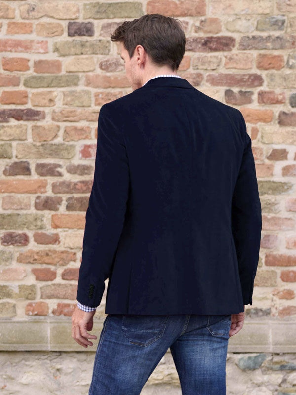 Edles Seiden Sakko „London“ In Blau Mit Dezentem Überkaro