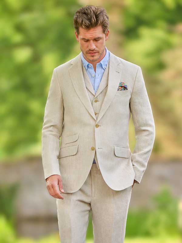 Edles Herren Leinensakko “London“ Im Blauen Fensterkaro