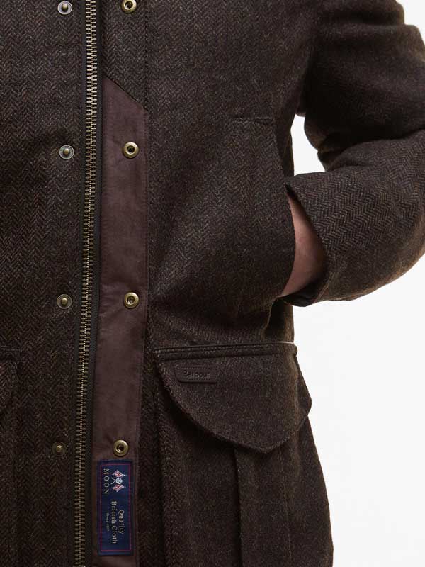 Die Barbour Hereford Tweed Wolljacke aus 100 % Wolle besticht durch ihre zeitlose und traditionelle Silhouette. Dank sorgfältiger Detailarbeit ist diese Jacke mit hochwertigen Lederbesätzen, glänzenden Messingnieten, Handwärmtaschen, dickem Kordelfutter am Kragen und plissierten Balgtaschen ausgestattet, in denen Sie alles Wichtige für Ihre Erkundungstouren durch die Natur verstauen können. Diese unverzichtbare Schicht eignet sich perfekt zum Tragen über Strick- und Fleecejacken in der kalten Jahreszeit und bietet optimalen Schutz vor den Elementen.