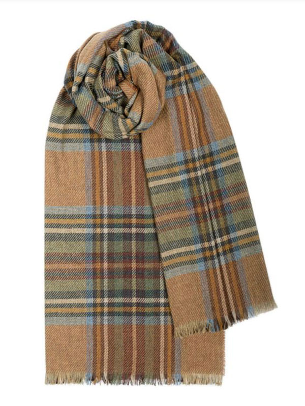 Dieser übergroße Schal ist aus einer feinsten Woll-Kaschmir-Mischung gewebt und besticht durch seine superweiche, luxuriöse und anschmiegsame Textur. Mit seinen kurzen Fransen ist er eine wunderschöne Ergänzung für jede Garderobe. Die Auswahl an klassischen Tartanmustern verleiht ihm einen zeitlosen Look, der sowohl Damen als auch Herren Freude bereitet.