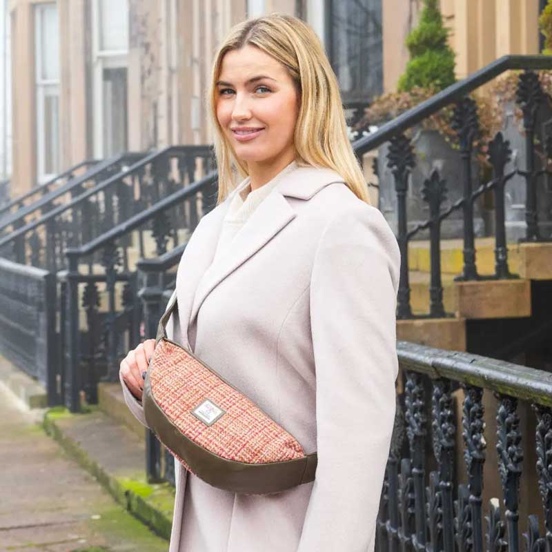 Die Ausführung des veganen Leders variiert je nach gewählter Harris-Tweed-Farbe: