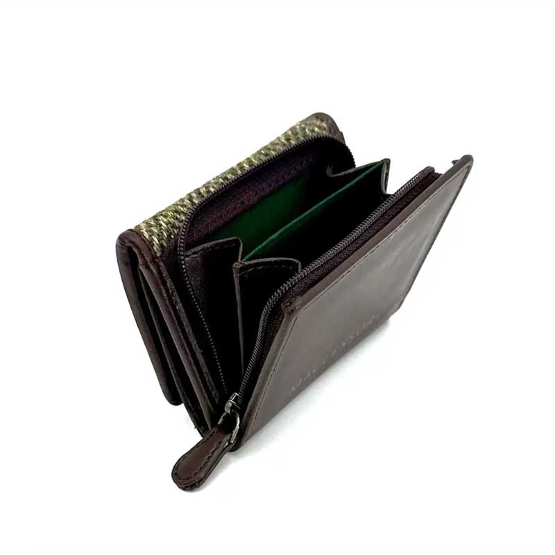Inspiriert von unserem Bestseller, dem Zip Purse, bietet diese dreifach gefaltete Geldbörse aus Harris Tweed das gleiche praktische Reißverschlussfach.