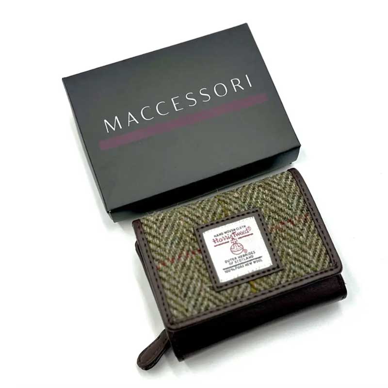 Dreifach gefaltete Handtasche aus Harris Tweed in Country Green.