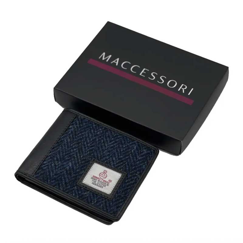 Harris Tweed Bifold Geldbörse in Blau.