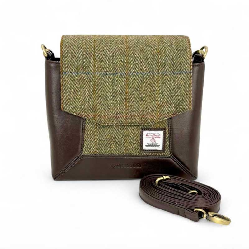 Harris Tweed Highland Messenger Bag In Country Green.