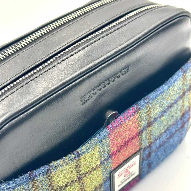 Diese Kameratasche aus Harris Tweed verfügt über zwei Innentaschen mit Reißverschluss für all Ihre wichtigen Utensilien, eine Außentasche mit Reißverschluss und ein offenes Fach mit Magnetverschluss.