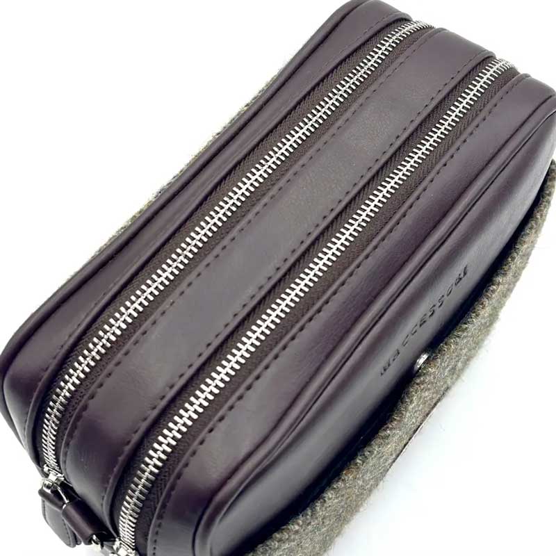 Diese Kameratasche aus Harris Tweed verfügt über zwei Innentaschen mit Reißverschluss für all Ihre wichtigen Utensilien, eine Außentasche mit Reißverschluss und ein offenes Fach mit Magnetverschluss.