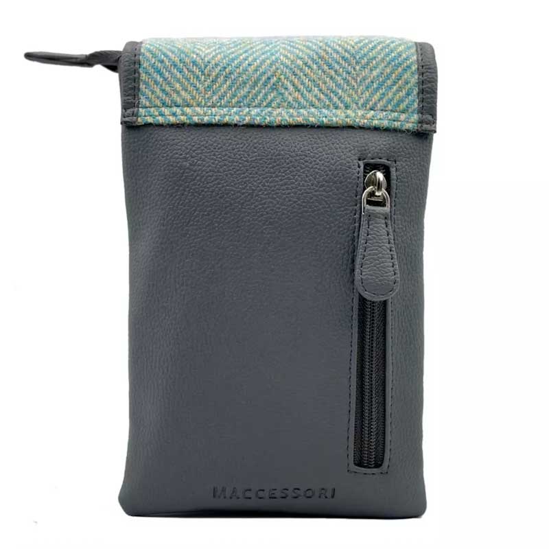 Harris Tweed Mini-Umhängetasche in Türkis-Fischgrätmuster.