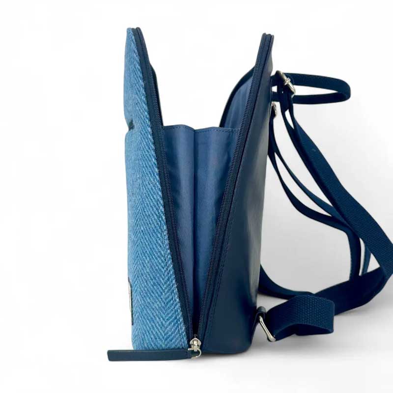 Harris Tweed Rucksack in Himmelblau.