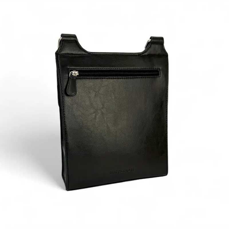 Die Tasche bietet Innentaschen, ein offenes Vorderfach und ein Reißverschlussfach auf der Rückseite.
