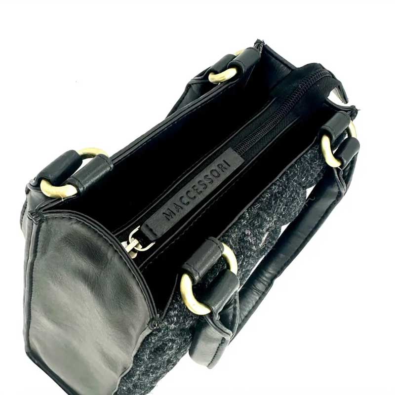 Harris Tweed Stepp-Mini-Tragetasche in Anthrazit.