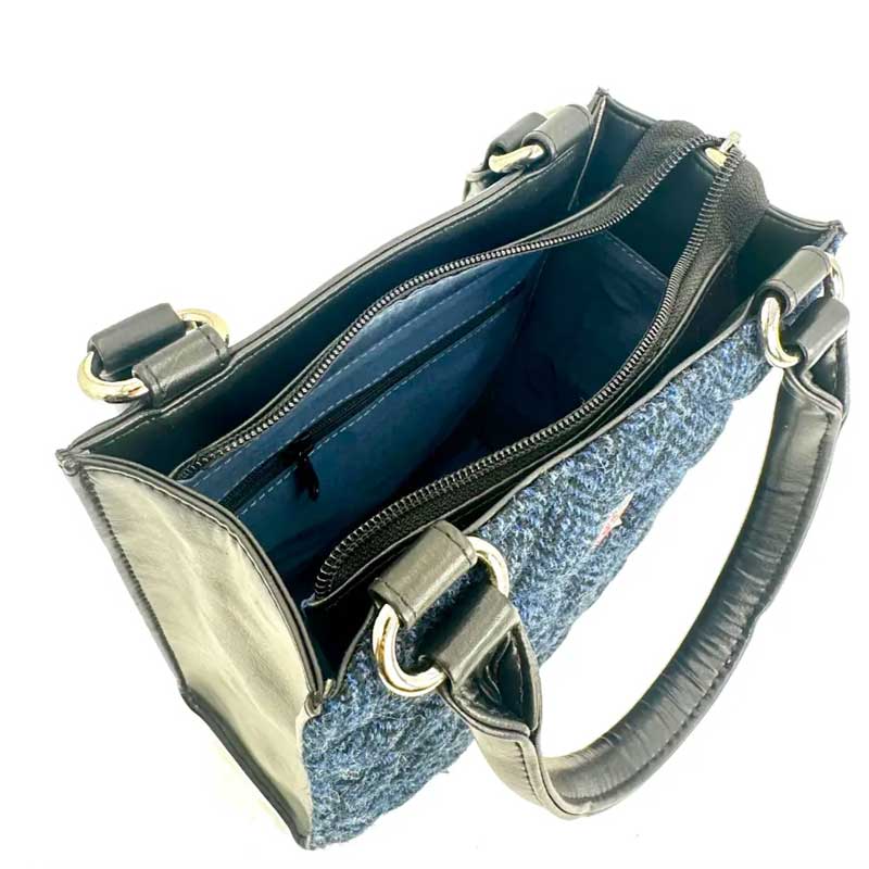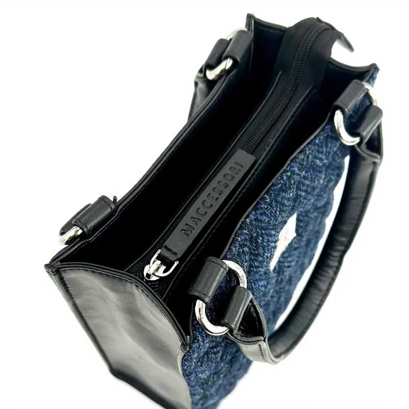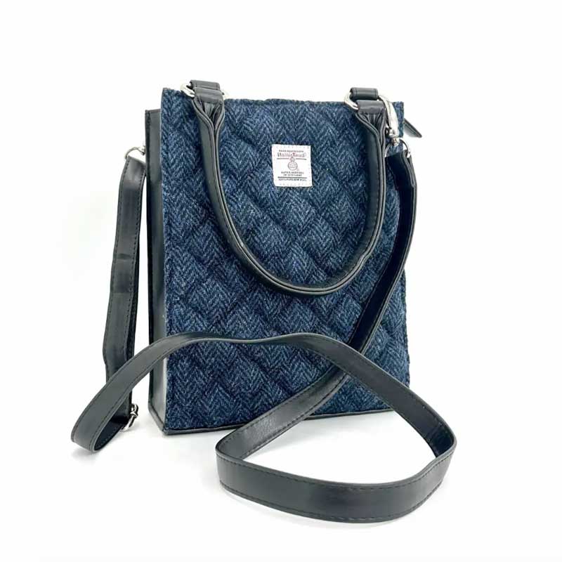 Harris Tweed Stepp-Mini-Tragetasche in Blau.