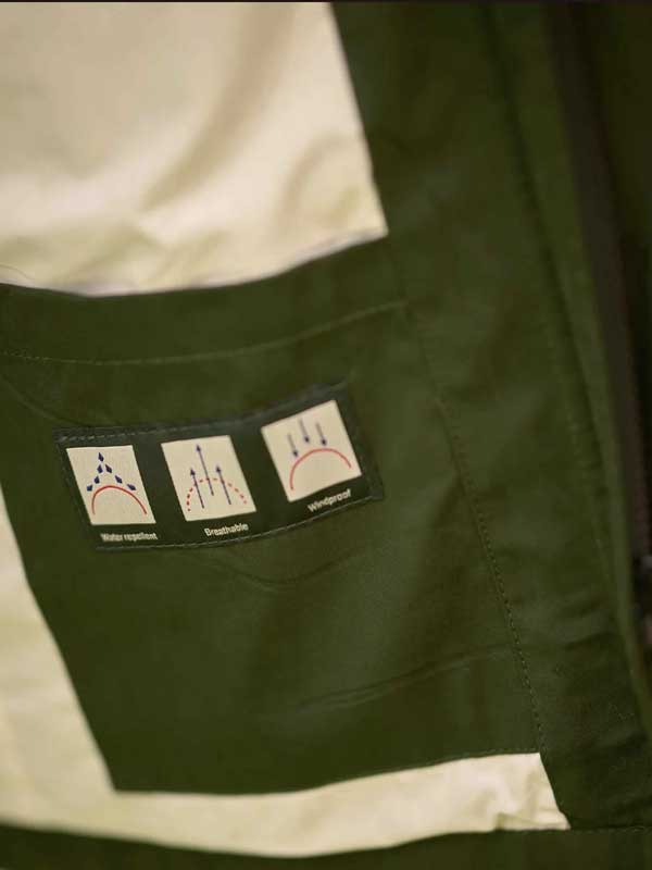 Oberstoff: 46 % Cotton, 40 % Polyester, 14 % Nylon Innenfutter: 70 % Polyester, 30 % Baumwolle