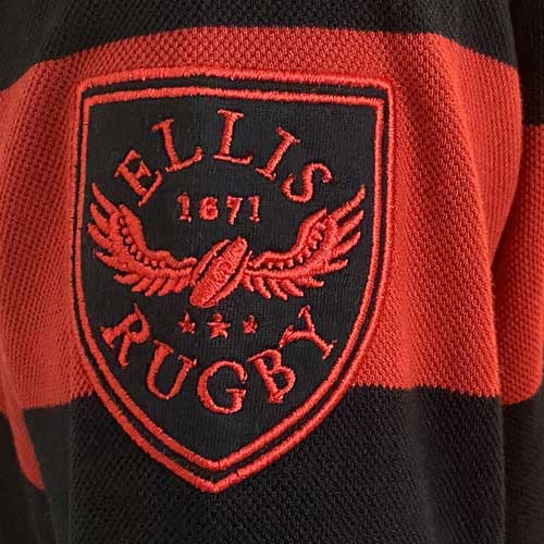 Einzigartige Details prägen das Design Das Polo vereint Nostalgie mit Stil und besticht durch mehrere einzigartige Merkmale. Der Schriftzug „EASTERN PROVINCE RUGBY“ ist in markanten Goldbuchstaben auf der Rückseite eingestickt und bildet einen schönen Kontrast. Auch der Kragen ziert die Jahreszahl „1980“ in Gold und verweist so auf die Ära, die das Design inspirierte. Abgerundet wird das Polo durch das rote Ellis Rugby-Logo mit schwarzer Ziernaht auf einem Ärmel. Die Liebe zum Detail zeigt sich auch am Saum, der mit einem gewebten Label und einem seitlichen Fischgrätschlitz versehen ist und so für Stil und Langlebigkeit sorgt.
