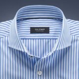 Popeline is de basis voor dit OLYMP SIGNATURE hemd met zijn rustige bleu strependessin dat is uitgevoerd met de SIGNATURE haaienkraag. Deze is iets dieper ingezet dan gebruikelijk en biedt, met of zonder stropdas, een optimaal draagcomfort dat ook wordt gewaarborgd door de figuuraccentuerende snit van de schouders. De edele platte zomen, de knoopsgaten met parelsteek en de parelmoerknopen in combinatie met de tailored-fit-snit in individuele maten maken deze OLYMP SIGNATURE uniek. Materiaal: Katoen 100%