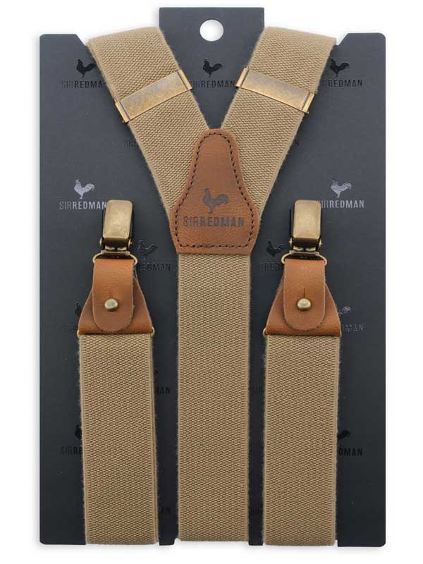 Die Kombination dieses hellbraunen Gummibands mit den braunen Details aus echtem Leder verleiht diesem Hosenträger einen robusten und widerstandsfähigen Look. Die Farbkombination passt perfekt zum aktuellen „Erdtrend“. Ideal für den modernen Mann. FIRST CLASS SUSPENDERS IN AUTHENTIC STYLE. Die Sir Redman Hosenträger sind erstklassige handgefertigte Luxus-Hosenträger von niederländischer Herkunft. Sir Redman ist für Männer, die durch Mode ein Statement abgeben wollen. Die es wagen, sich zu zeigen und sich zu behaupten. Mit Sinn für Stil und Qualität.