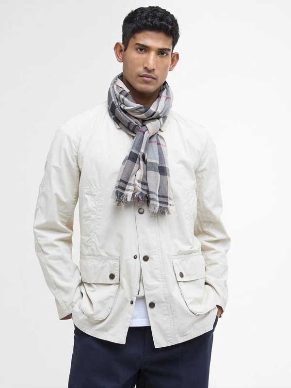 Dieser klassische Schal aus einem leichten und luftigen Baumwoll-Leinen-Gemisch ist perfekt für einen lauen Sommerabend.